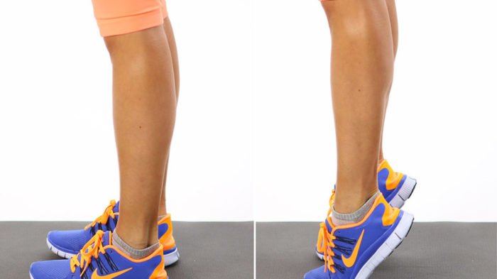 Stand on tiptoe and go down without hitting the heel to the ground. Do 3 sets of 15 reps